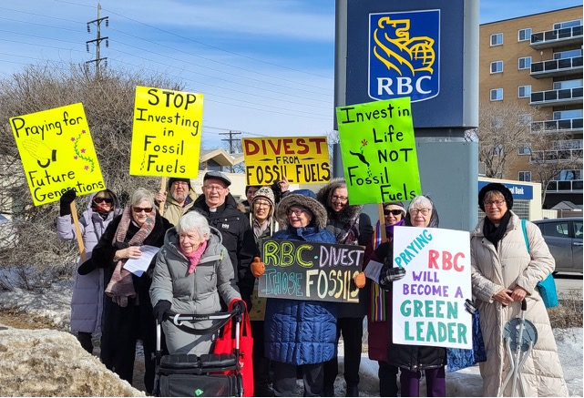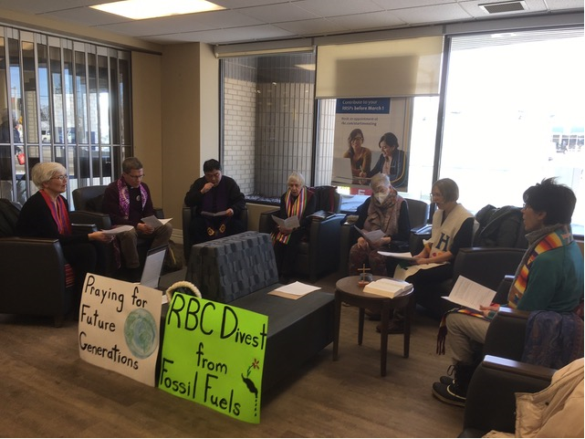 To learn more and get involved in Praying in Public for Environmental Justice at Royal Bank of Canada branches, in Winnipeg, email lyndatrono@gmail.com.