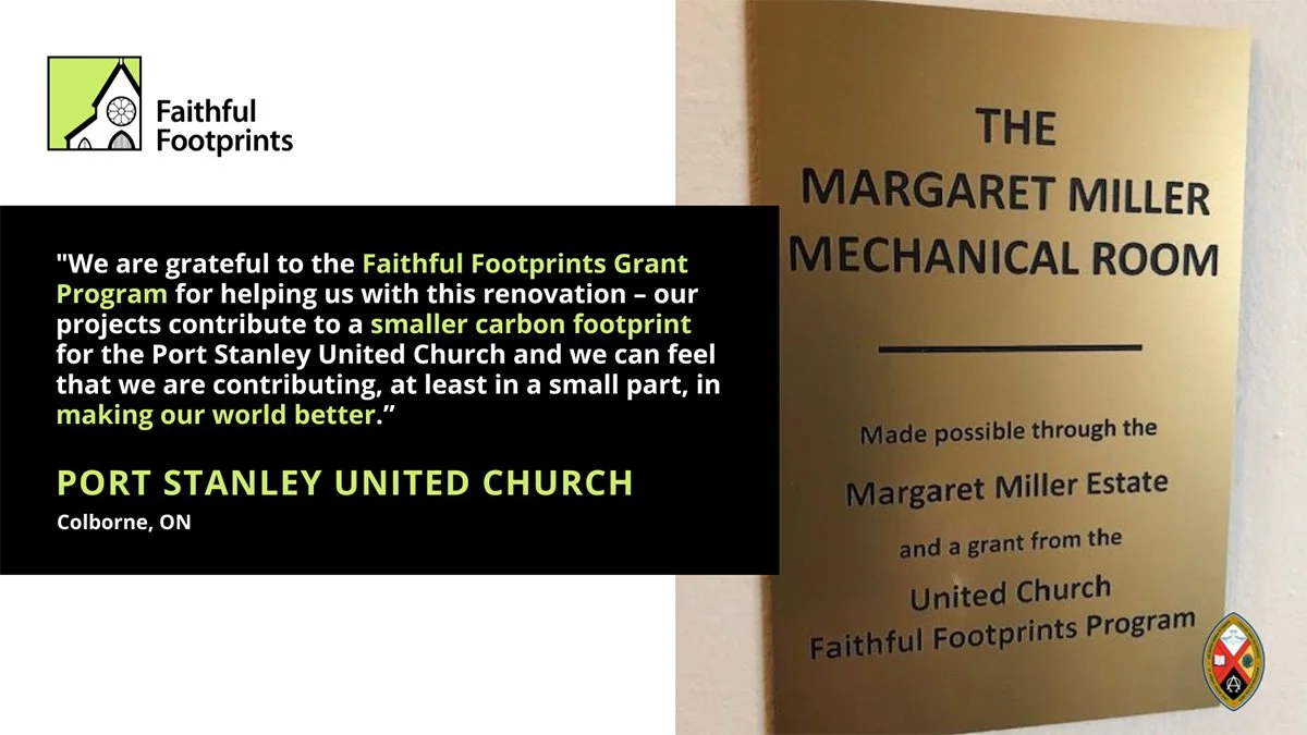 Faithful Footprints recognition outside of The Margaret Miller Mechanical Room at Port Stanley United Church (Colborne, ON)
