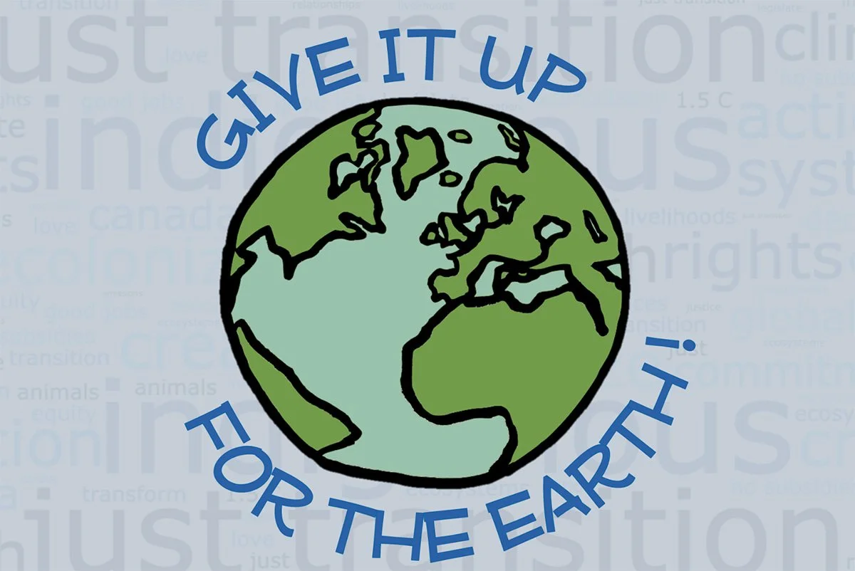 Give it up for the Earth! is a national faith-in-action campaign that raises awareness about climate change and mobilizes people across Canada to reduce personal and household greenhouse gas emissions, engage in acts of solidarity, and collect signatures as a demonstration of support for increased federal government action.