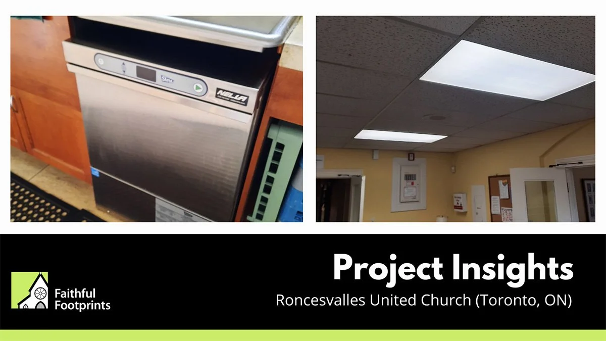 Received a grant to replace over 90 fluorescent tubes/bulbs with LEDs, install motion detection lights in washrooms, replace dishwasher, and order custom insert sealers for two stained glass windows in the sanctuary.