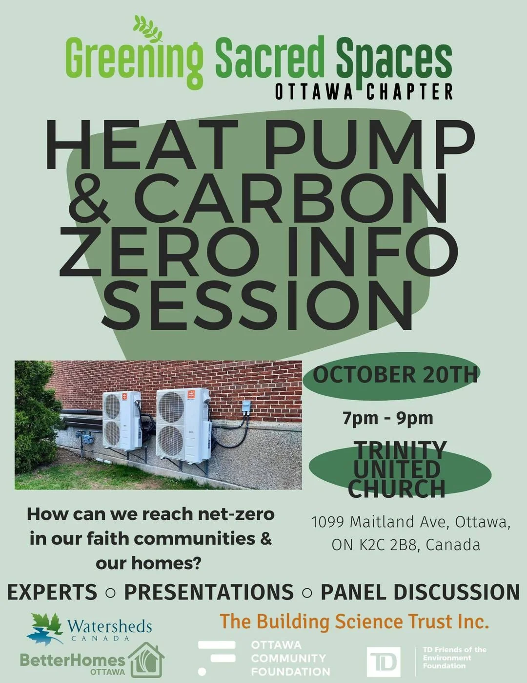 This coming fall, Trinity United Church (Ottawa, ON) will be hosting an info session about heat pumps and how we can reach net carbon zero in our homes and in our communities of faith. The session will highlight net zero buildings, feature a panel of experts, and will discuss its new heat pumps, installed as part of the Faith Community Capacity Building Program.