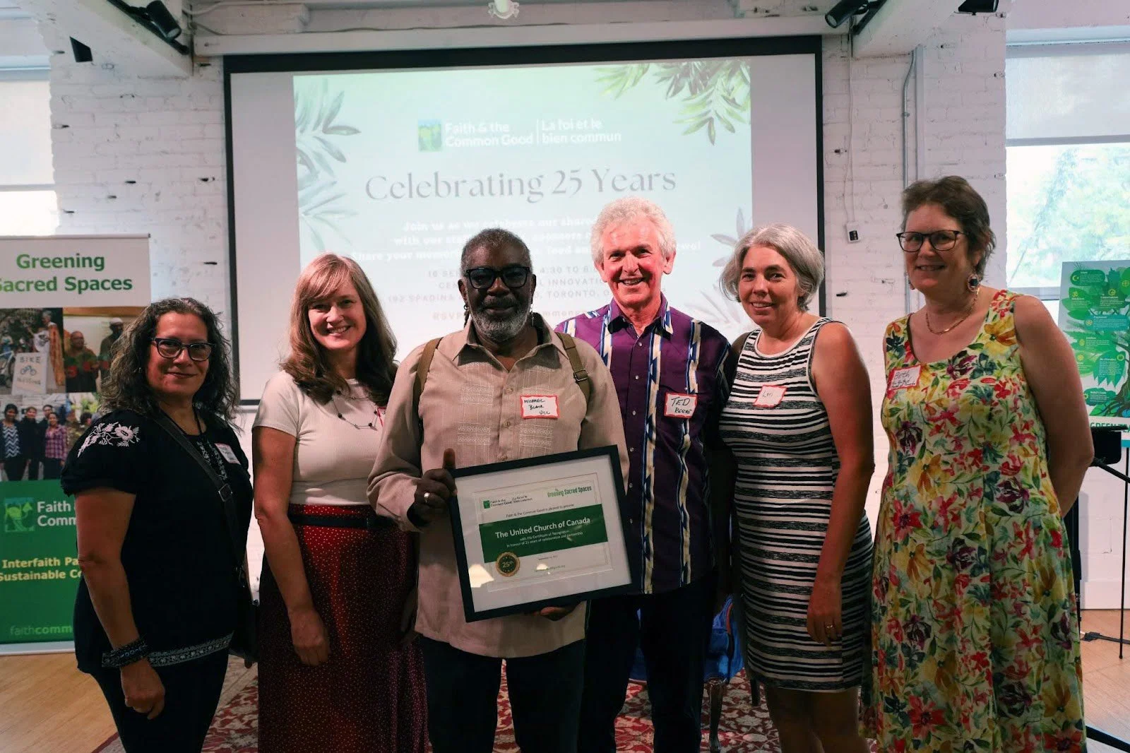 Earlier this month, Faithful Footprints program delivery partner Faith & the Common Good (FCG) celebrated its 25th anniversary. Founded by the Very Rev. Bill Phipps and Rev. Ted Reeve, the interfaith network is dedicated to helping religious and spiritual communities build more sustainable futures. For decades, the organization has supported communities in greening their places of worship through initiatives such as green audits. At the celebration, the General Secretary of The United Church of Canada, Rev. Michael Blair, was presented with a certificate in honour of the church's long-standing partnership with FCG.