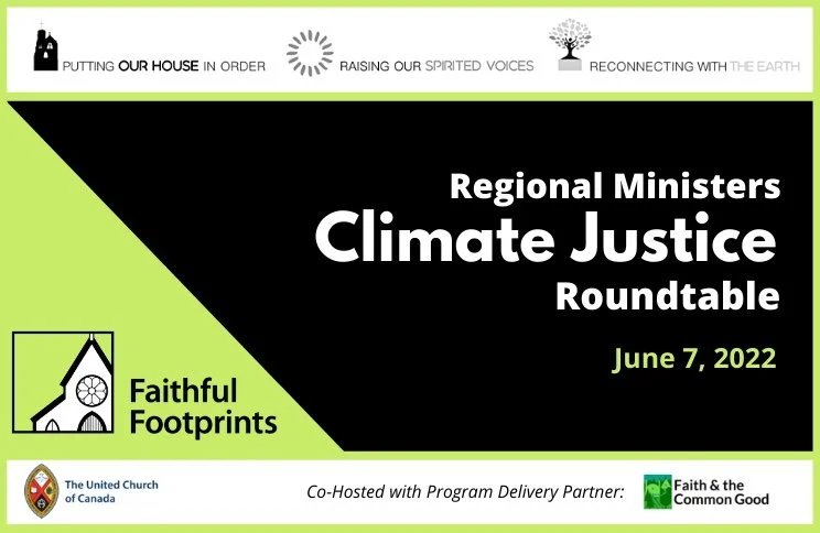 The Regional Ministers Climate Justice Roundtable, co-hosted by The United Church of Canada General Council Office staff and Faith & the Common Good (FCG), is meeting this spring to foster collaborative discussions among UCC Regional Ministers, General Council Office staff and the Faithful Footprints delivery team.