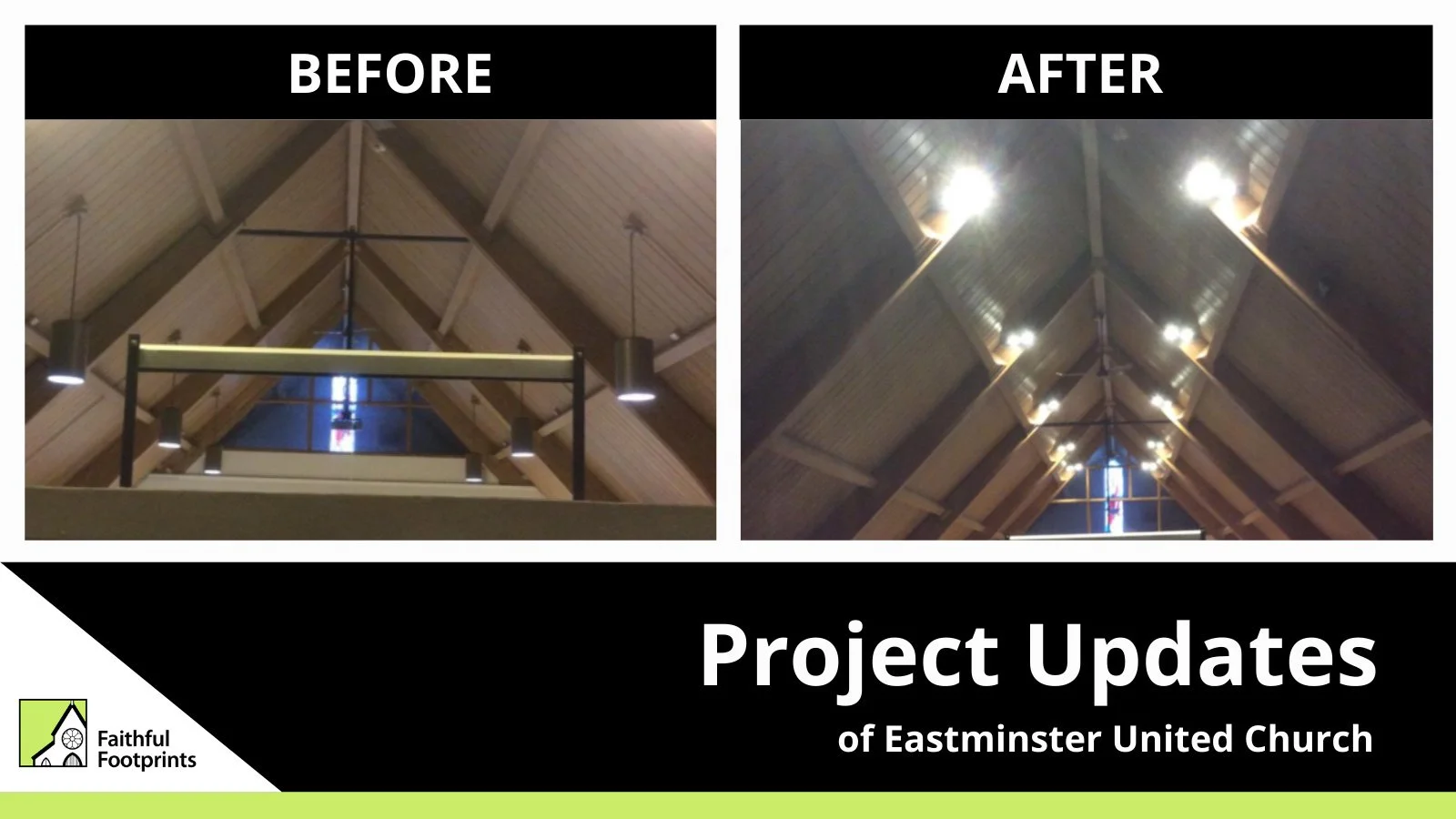Before and After lighting results in Eastminster United Church's Chapel