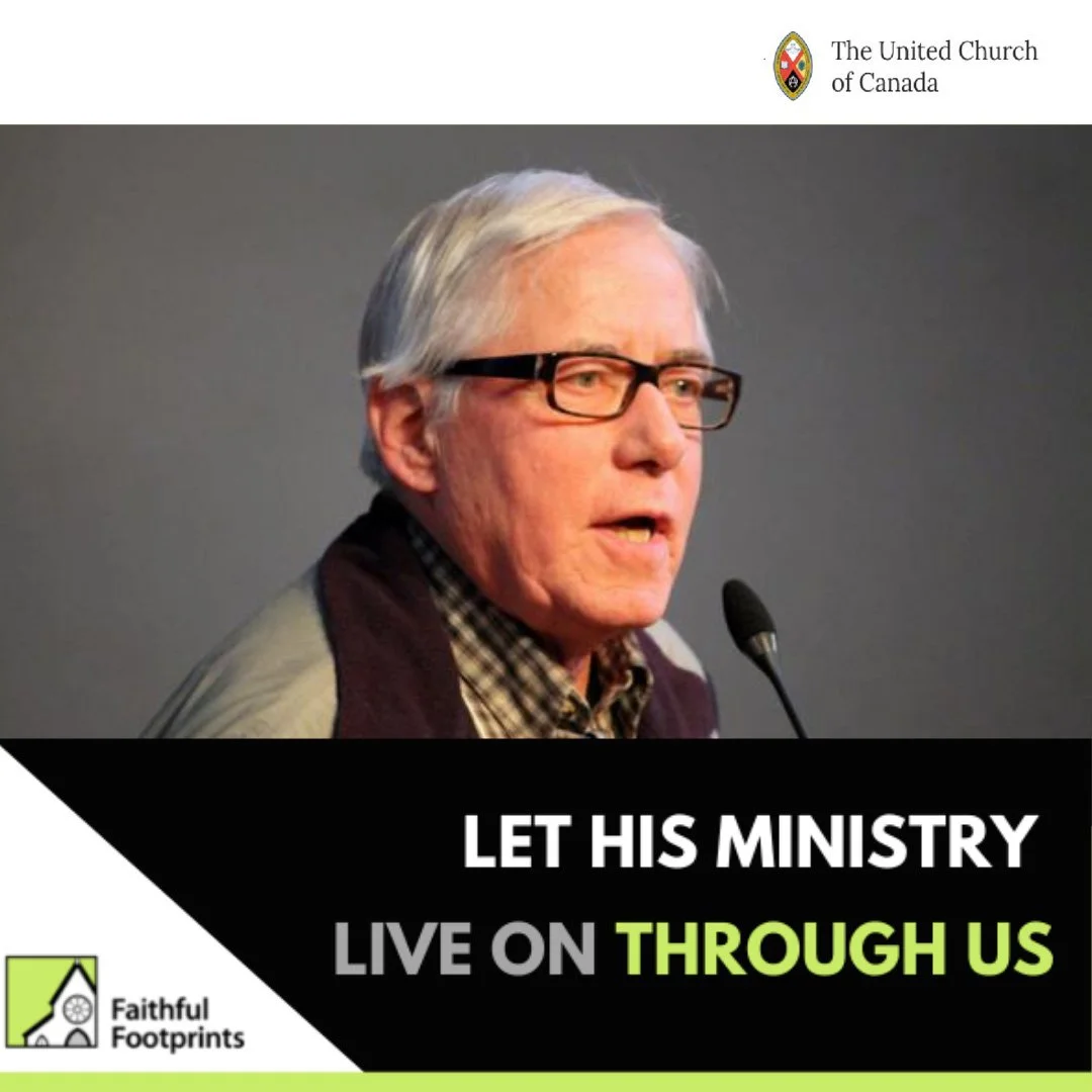 As the 36th Moderator of the United Church of Canada from 1997 to 2000, and co-founder of Faith & the Common Good, Bill Phipps had a dedicated heart for serving people and the environment. He was a respected advocate in the spaces of social justice, relations with First Nations, poverty, and grass roots community organizing. He preached for the common good, inspiring many others along his path to do the same. As a memoriam of his lifelong work, Faithful Footprints is committed to continue his ministry through our program.