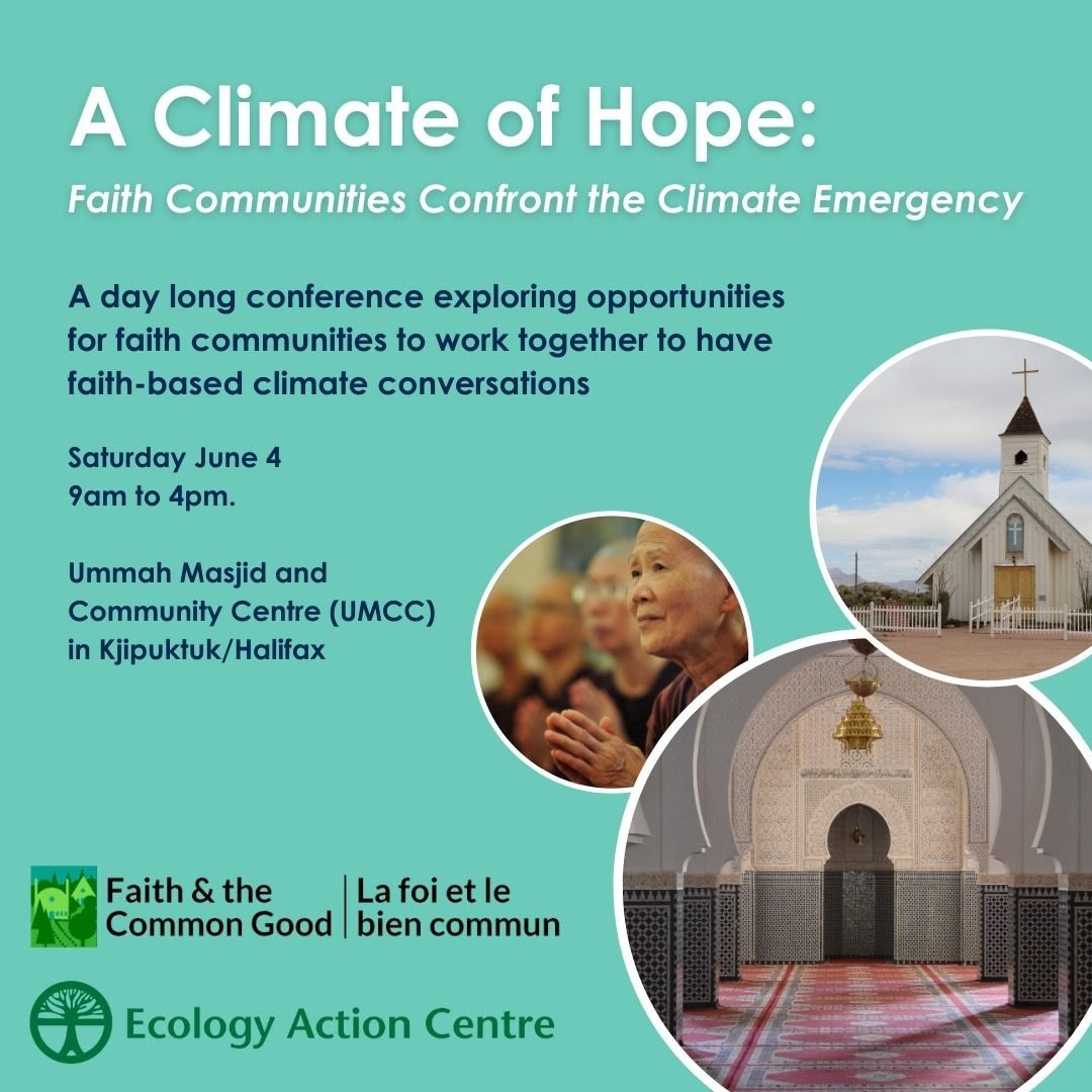 Faithful Footprints Atlantic Regional Support Centre, Ecology Action Centre is hosting an in-person conference, A Climate of Hope: Faith Communities Confront the Climate Emergency. This conference will include key-note speakers, workshops, resource sharing, and opportunities for faith communities to work together to have faith-based climate conversations.